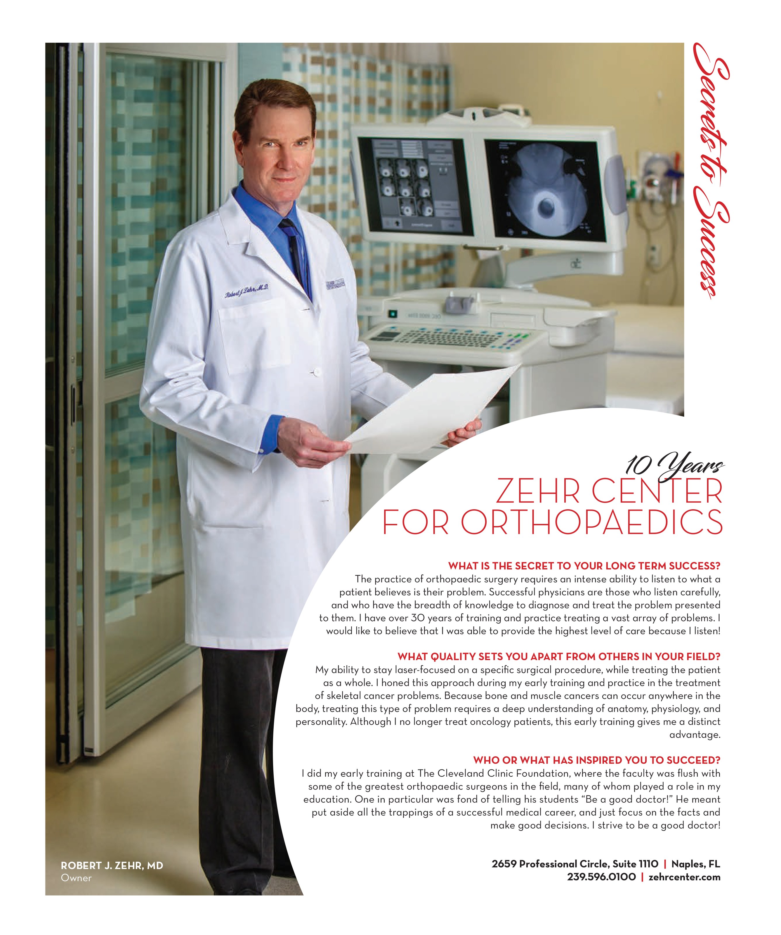 Over the years, Dr. Zehr and The Zehr Center for Orthopaedics have participated in special promotional sections of Southwest Florida lifestyle magazines and advertised in other area print publications and video spots. You may view some of these ads by clicking on the link provided.